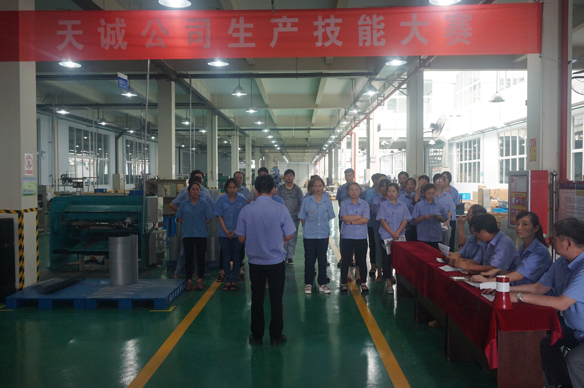 為提高生產(chǎn)一線人員的技能水平,培養(yǎng)造就一支技術(shù)精湛、作風(fēng)過(guò)硬的人才隊(duì)伍,2017年6月28日,我公司在生產(chǎn)現(xiàn)場(chǎng)舉辦了“天誠(chéng)公司生產(chǎn)技能大賽”活動(dòng),劉揚(yáng)舉總經(jīng)理蒞臨現(xiàn)場(chǎng)指導(dǎo)評(píng)點(diǎn)。