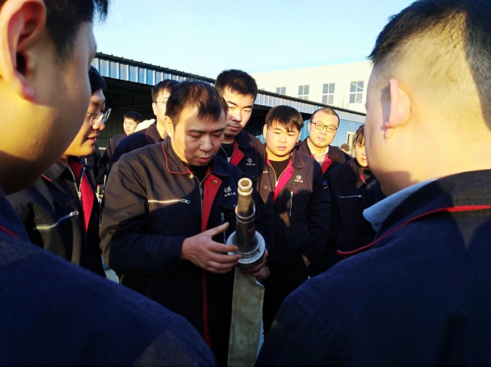 新鄉(xiāng)天誠消防小組進行了消防知識和逃生技能的現(xiàn)場演練,對滅火器、消防水帶等消防器材的規(guī)范使用做了現(xiàn)場示范,隨后組織員工使用滅火器進行滅火練習和使用消防水槍滅火練習。